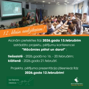 Tālmācības vidusskolas “Rīgas Komercskola” 12.klases audzēkņi aicināti piedalīties projektu, pētījumu...