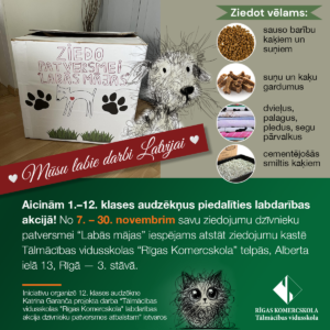 Aicinām 1.-12.klases audzēkņus piedalīties labdarības akcijā! Mūsu, 12.klases audzēkne Katrīna...