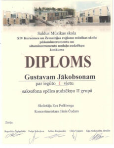 Gustavam Jākobsonam 1. vieta XIV Kurzemes un Žemaitijas reģionu mūzikas...