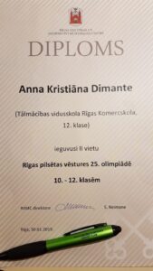Rīgas Komercskolas audzēknes 2. vieta Rīgas pilsētas vēstures 25. olimpiādē