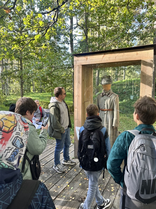 Apmeklējām Pirmā pasaules kara vēstures izziņas maršrutu gida Viktora pavadībā, kur uzzinājām jaunus un interesantus faktus par šo vēstures periodu, apskatījām zemes reljefā saglabājušās blindāžu vietas, zemnīcu un artilērijas šāviņu rezultātā radušās bedres.