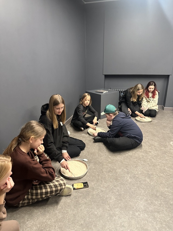 Pēc izietas izziņas takas, iepazināmies ar Olaines Vēstures un mākslas muzeja ekspozīcijām, kā arī piedalījāmies muzejpedagoģijas nodarbībā “Muzeja priekšmeta stāsts”, kur muzejpedagoģe Santa pastāstīja kas ir muzejs un kādēļ tas ir nepieciešams. Krājuma glabātājas Lindas pavadībā apskatījām dažādus Olaines Vēstures un mākslas muzeja priekšmetus, noskaidrojām to pielietojumu un veidojām aprakstus atrastajiem priekšmetiem.