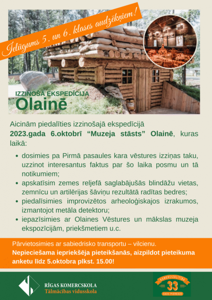 Mūsu, Tālmācības vidusskolas “Rīgas Komercskola” 5. un 6.klases audzēkņi kopā ar pedagogiem piedalījās izzinošajā ekspedīcijā “Muzeja stāsts” Olainē.