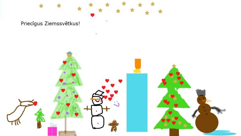 Šīs gleznas ir tapušas sadarbojoties visai klasei un virtuāli gleznojot 5-10 minūšu laikā uz baltās tāfeles.