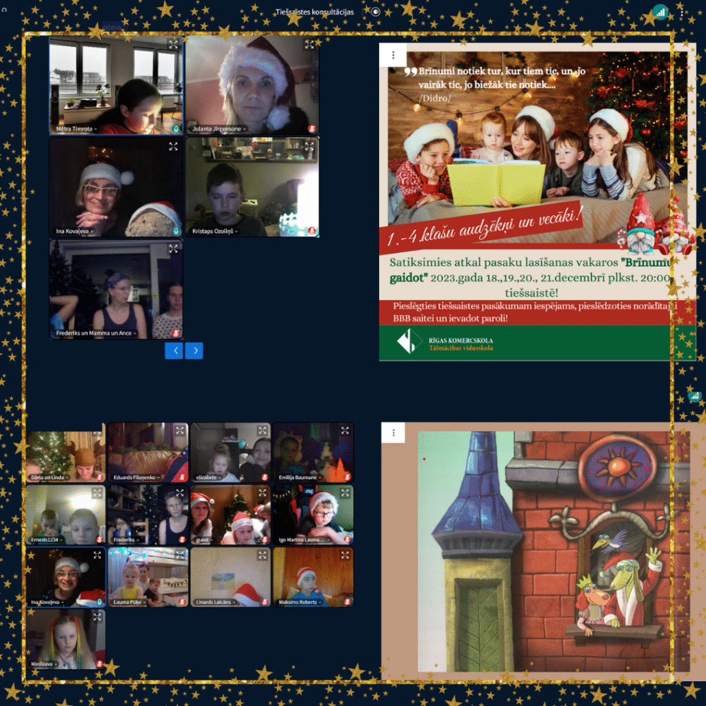 Mūsu, Tālmācības vidusskolas “Rīgas Komercskola”, 1.- 4. klašu audzēkņi kopā ar ģimenēm un pedagogiem satikās pirmssvētku nedēļā pasaku lasīšanas vakaros “Brīnumu gaidot” tiešsaistes klasē, lai kopīgi lasītu savas mīļākās pasakas un kopīgi pārrunātu gūtās atziņas, ieklausoties ikviena pārdomās un sajūtās.