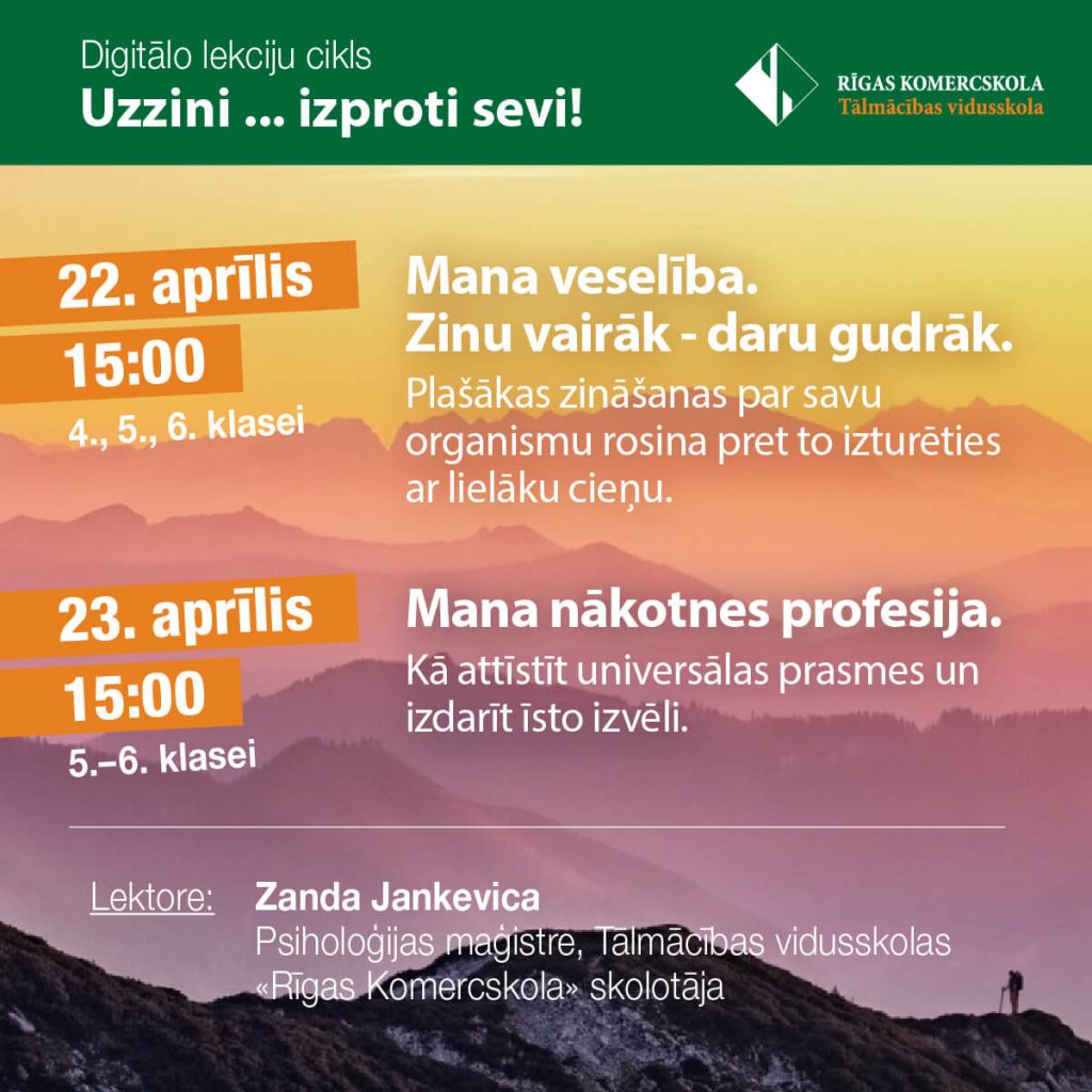Piedāvājam digitālo lekciju ciklu «Uzzini… izproti sevi!» Tālmācības vidusskolas «Rīgas Komercskola» audzēkņiem.