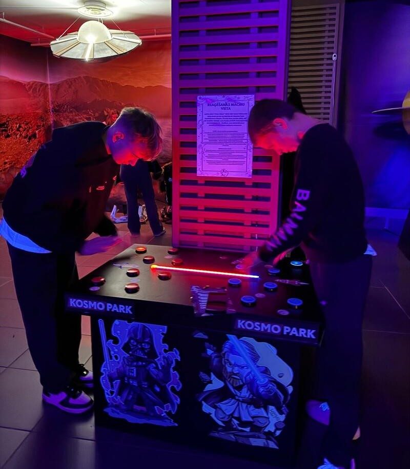 Savukārt, interaktīvajā ceļojumā “Kosmopark” – audzēkņi iesaistījās dažādās aktivitātēs – izmēģināja kosmonautu trenažierus, iepazina un svērās uz dažādu planētu gravitācijām atbilstošiem svariem, gāja pa dažādu planētu virsmām, iepazina atklājumus Visumā, izpētot raķešu maketus un uzzināja dzīvesstāstus par Latvijā dzimušajiem kosmonautiem.