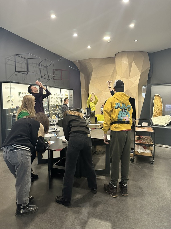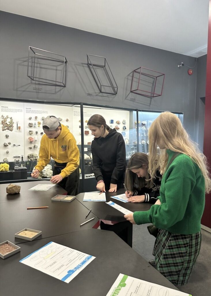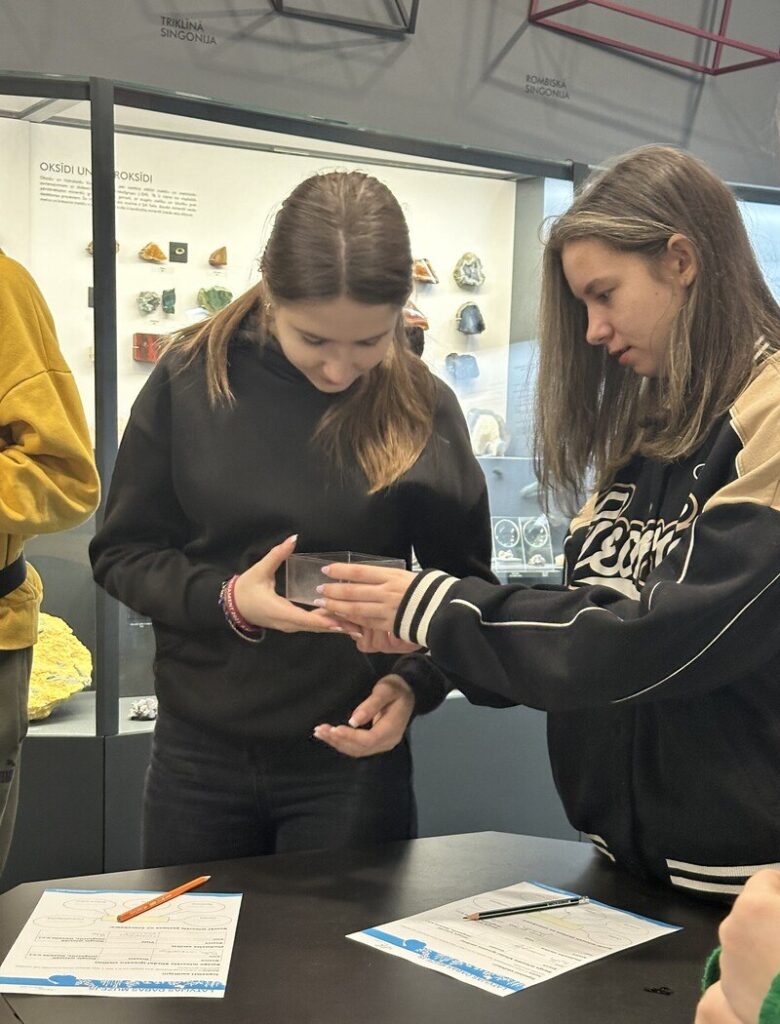 Latvijas Nacionālā dabas muzeja muzejpedagoģes vadībā audzēkņi ne tikai aplūkoja ekpozīciju ar iežiem un minerāliem, bet arī pētīja minerālus mikroskopā, noteica minerālu paraugus pēc to fizikālajām īpašībām un dažām citām pazīmēm. Šādi, praktiski darbojoties un veicot eksperimentus, audzēkņi padziļināti izprot un papildina skolas mācību programmā apgūtās zināšanas.