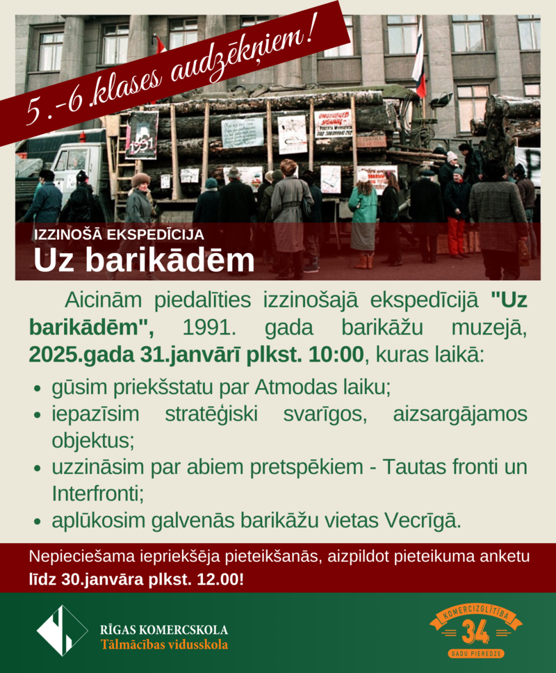 Mūsu, Tālmācības vidusskolas “Rīgas Komercskola”, audzēkņi šajā mēnesī piedalījās dažādās izzinošajās ekspedīcijās 1991. gada barikāžu muzejā, lai vairāk izzinātu barikāžu laika notikumus.