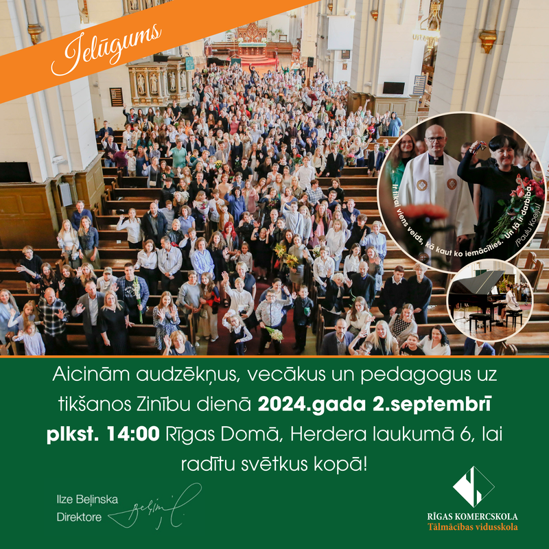 Zinību dienā, Tālmācības vidusskolas “Rīgas Komercskola” audzēkņus, vecākus un pedagogus bija pārņēmis atkalredzēšānās prieks un prieks par kopīgi paveikto 2023./2024. mācību gadā.