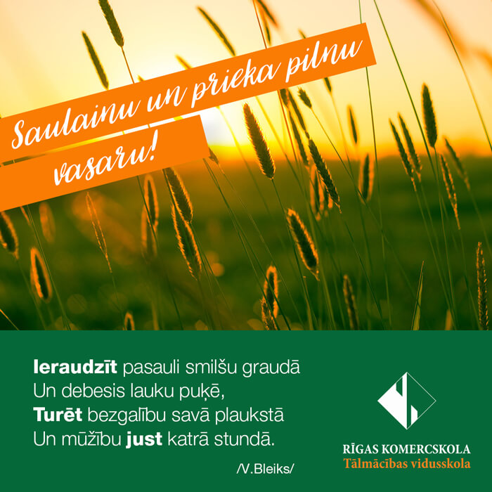 Lai vasarā ikvienam no Jums ir neizsīkstoši avoti pozitīvām emocijām, darot labus darbus, gūstot emocijas no dabas, un saskarsmes ar tuviem un mīļiem cilvēkiem ! Un, kad tuvojas gladiolu un asteru krāšņums, tad esiet starojoši un enerģijas pārpilni jaunā mācību gada sākumam!