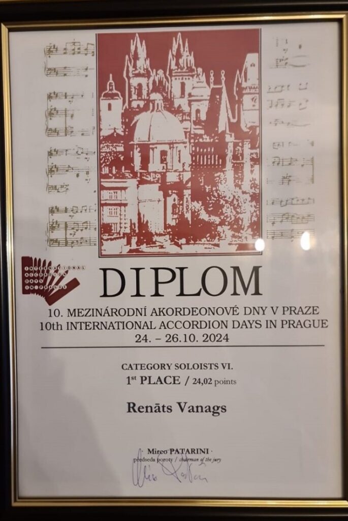 Mūsu, Tālmācības vidusskolas “Rīgas Komercskola”, 12. klases audzēknis Renāts Vanags ir ieguvis 1.vietu Starptautiskajā akordeonistu konkursā Prāgā – “International Accordion Days in Prague”, kurā piedalījās 180 dalībnieki no 13 valstīm.
