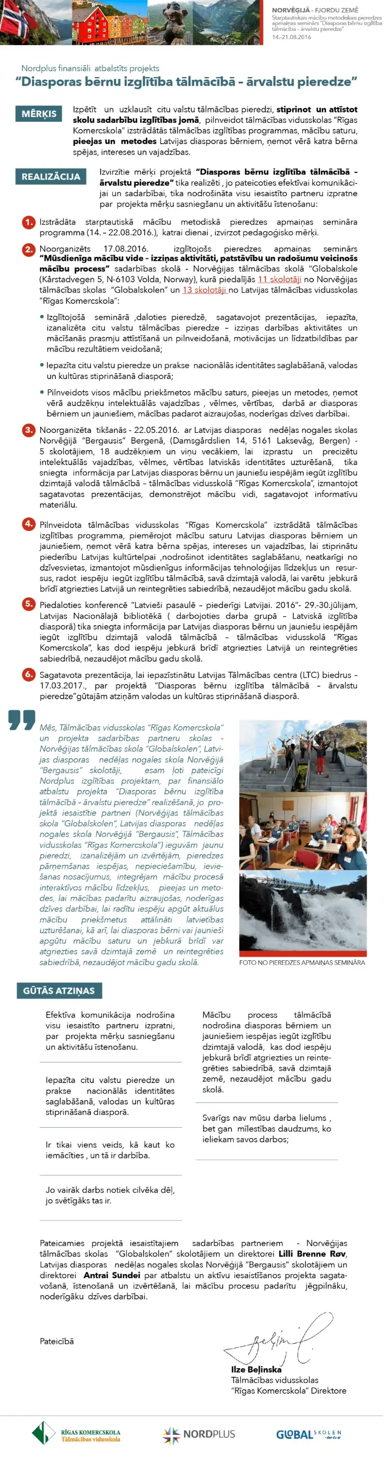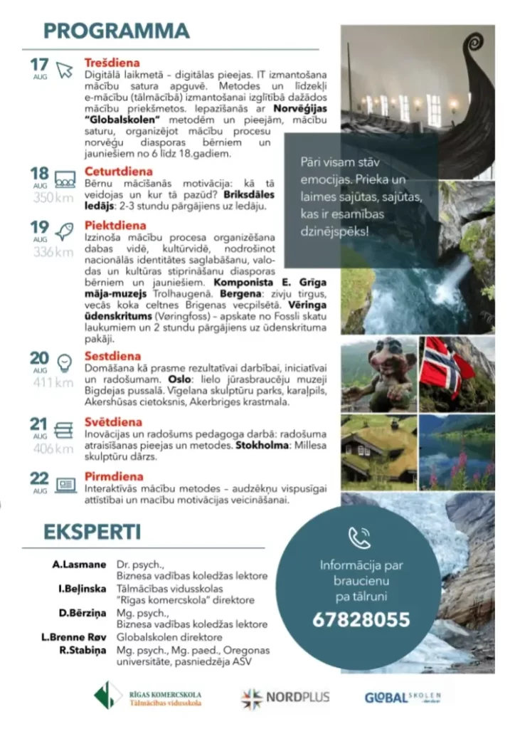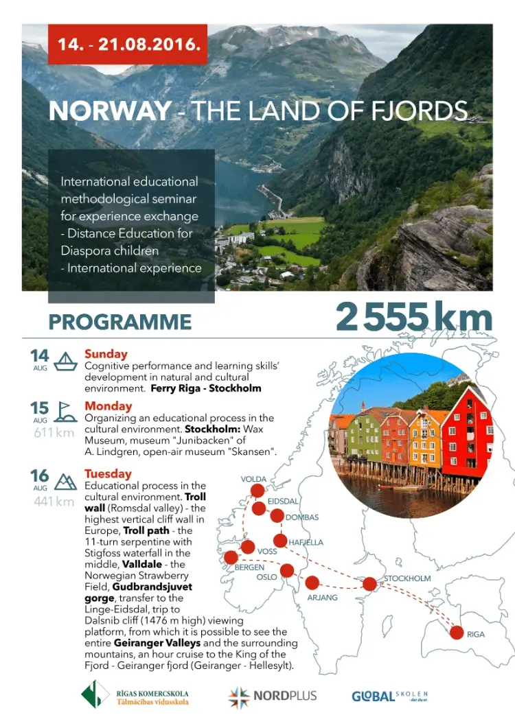 Starptautiskā mācību metodiskā pieredzes apmaiņas semināra «Diasporas bērnu izglītība tālmācībā – ārvalstu pieredze» programma Norvēģijā – fjordu zemē