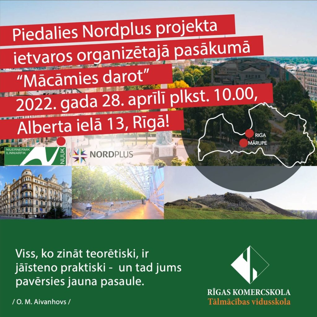 Piedalies Nordplus projekta pasākumā «Mācāmies darot»!