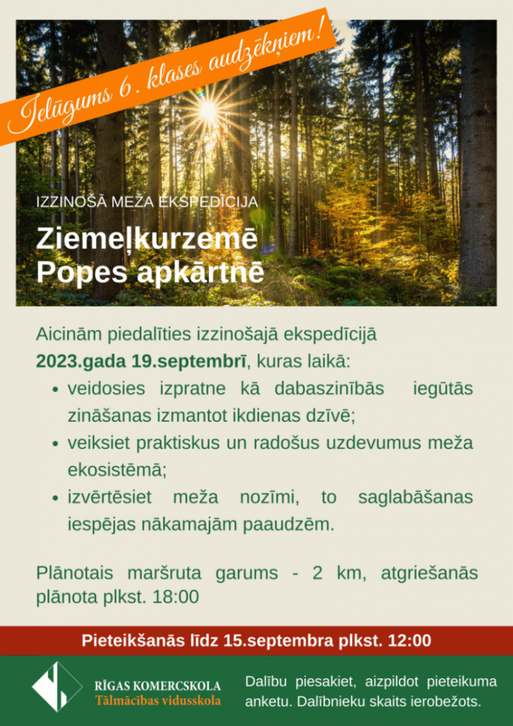 Mūsu, Tālmācības vidusskolas “Rīgas Komercskola” 6.klases audzēkņi kopā ar pedagogiem piedalījās izzinošajā Meža ekspedīcijā Ziemeļkurzemē, Popes apkārtnē.