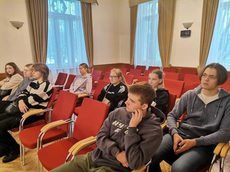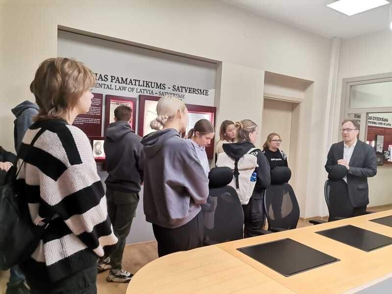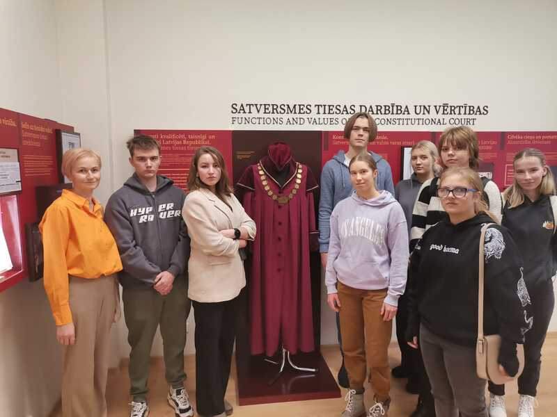 Audzēkņi ne tikai iepazinās ar Satversmes muzeja krātuves bagātībām, atkārtotojot zināšanas par Satversmi, bet arī iejutās tiesnešu lomās un saņēma atbildes uz sev interesējošiem jautājumiem.