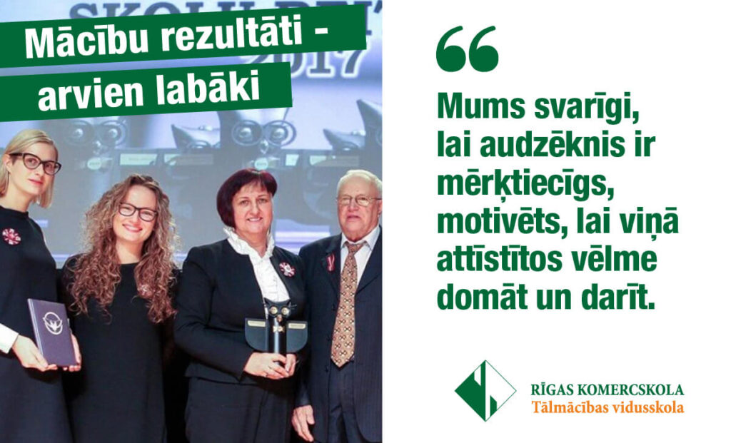 Nereti piesaukto mītu, ka tālmācība ir teju neveiksminieku izvēle, apgāž Tālmācības vidusskola “Rīgas komercskola”, kurā strādā aizrautīgi, progresīvām idejām pārpilni pedagogi un mācās talantīgi, motivēti, sekmīgi bērni un jaunieši. Šajā pavasarī skola ir veiksmīgi akreditēta nākamajam periodam uz maksimālo periodu uz 6 gadiem līdz 2024. gada
