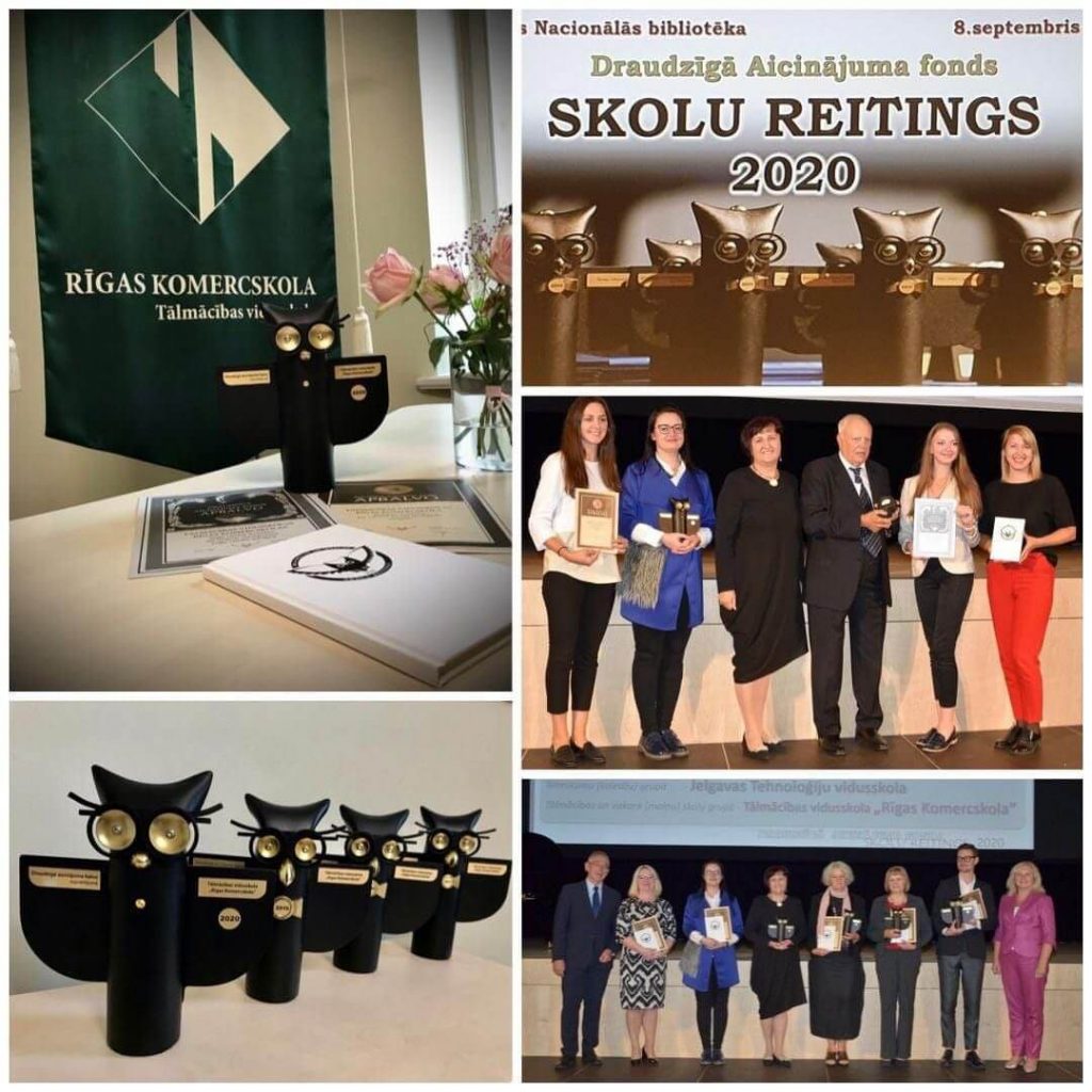 Tālmācības vidusskola «Rīgas Komercskola» atkārtoti iegūst Draudzīgā Aicinājuma konkursa «Skolu reitigs 2020» galveno balvu kopvērtējumā – Pūci, diplomu un grāmatu kā labākā tālmācības un vakara vidusskolu grupā un diplomu kā labākā angļu valodā specializēto skolu grupā, balstoties uz sasniegumiem valsts centralizētajos eksāmenos.