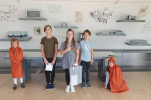 Rīgas Komercskolas sākumskolas un pamatskolas audzēkņi izstādē “Grāmatu plūdi: Ziemeļi satiek Baltiju bērnu grāmatās”