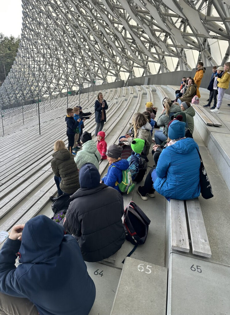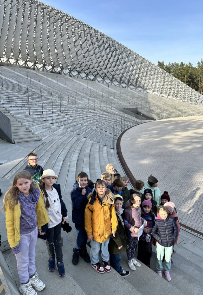 Audzēkņi ne vien piedalījās rotaļās un Lieldienu tematikas viktorīnā, bet arī devās gida pavadībā iepazīt Mežaparka Lielās estrādes arhitektūru un vēsturi. Gida aizraujošā stāstījuma pavadījumā tika izstaigātas estrādes iekštelpas, kā arī pati estrāde, kur audzēkņiem koru tribīnēs bija iespēja kopīgi nodziedāt vairākas dziesmas.