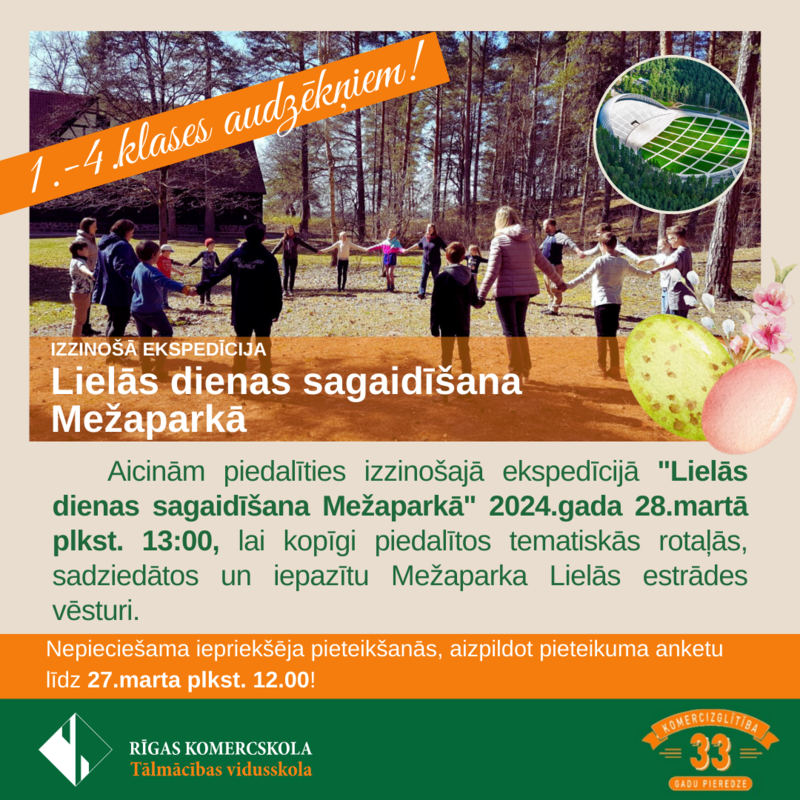 Mūsu, Tālmācības vidusskolas “Rīgas Komercskola”, 1.-4.klases audzēkņi devās izzinošajā ekspedīcijā uz Mežaparku, lai kopīgi ieskandinātu Lieldienas.