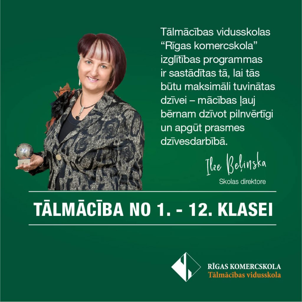“Kompetenču izglītību raksturo attieksme, prasmes un zināšanas. Vissvarīgākā, manuprāt, ir attieksme, jo, tikai pateicoties tai, būs zināšanas un prasmes,” saka Tālmācības vidusskolas «Rīgas Komercskola» direktore Ilze Beļinska. “Attieksmes veidošanā liela nozīme ir videi ģimenē un skolā. Kā pedagogiem, tā vecākiem ir jālūkojas vienā virzienā, ik dienu paturot prātā, ka visa centrā ir audzēknis. Viņi ir tik dažādi – katram savs ritms un temps, savi ieradumi un raksturs. Kopā ar ģimeni mēs veidojam attieksmi pret audzēkni, atbilstoši katra individuālajām īpatnībām. Tiklīdz tas izdodas, audzēknim rodas pozitīva attieksme pret mācībām un ikdienas darbiem.